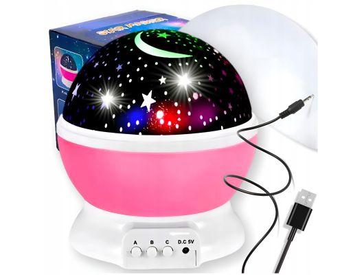 LAMPKA NOCNA PROJEKTOR GWIAZD NIEBA OBROTOWA RÓŻOWA 2w1 DLA DZIECI PREZENT