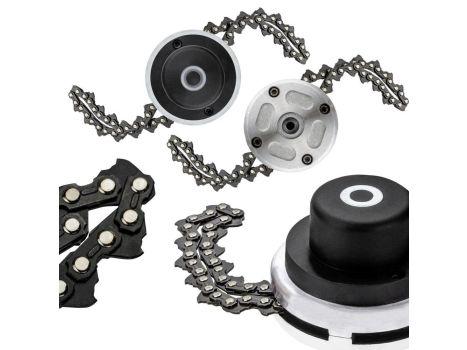 Wymienna głowica łańcuchowa jest kompatybilna z kosami, wykaszarkami oraz podkaszarkami spalinowymi. Wykonana z trwałej i mocnej stali, dzięki czemu ma o wiele dłuższą żywotność niż standardowe głowice żyłkowe oraz jest odporna na wszelkie uszkodzenia mechaniczne.
