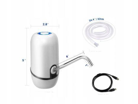 Zawartość zestawu: 1x pompka elektryczna, 1x metalowy kranik, 1x elastyczna rurka, 1x kabel USB
