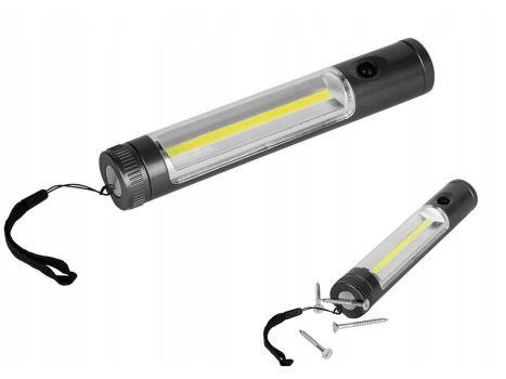 Latarka COB+LED to poręczna latarka zarówno w domu jak i podczas podróży. Latarka posiada dwa tryby oświetlenia, między którymi można przełączać za pomocą przycisku.