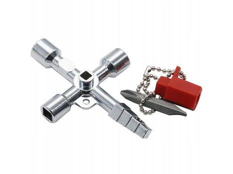 Uniwersalny klucz wyposażony w końcówki do otwierania i zamykania większości popularnych systemów skrzynek oraz szaf sterowniczych. Zamki tego typu stosuje się w instalacjach elektrycznych, grzewczych, sanitarnych, gazowych w windach oraz w wielu innych urządzeniach technicznych.