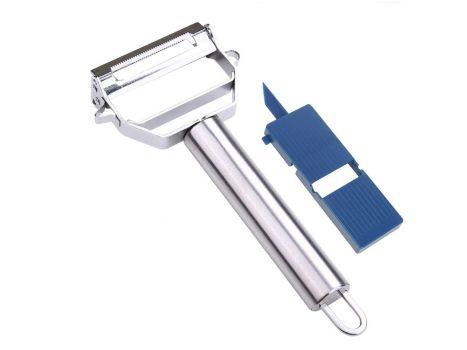 W zestawie znajduje się obieraczka oraz specjalna deseczka, dzięki której obierak zmienia się w szatkownicę poszatkujesz swoje warzywa.