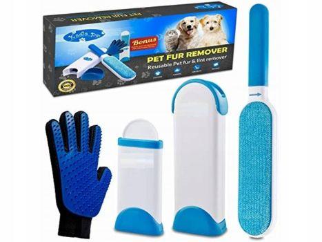 Zestaw Szczotka do czyszczenia sierści z materiału + rękawica do wyczesywania zwierząt