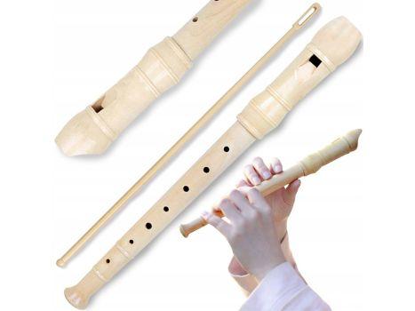 Flet prosty drewniany w naturalnym kolorze, posiada 8 otworów, a co za tym idzie charakteryzuje się lepszą jakością i bardziej miękkim brzmieniem od fletu plastikowego.