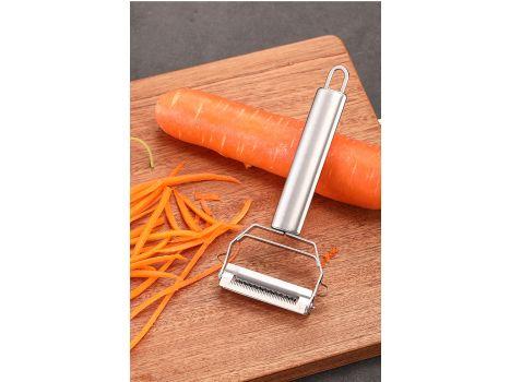 W zestawie znajduje się obieraczka oraz specjalna deseczka, dzięki której obierak zmienia się w szatkownicę poszatkujesz swoje warzywa.