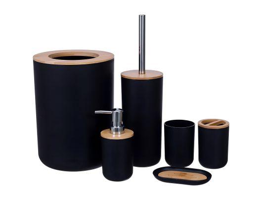 ZESTAW ŁAZIENKOWY 6 ELEMENTÓW AKCESORIA DO WC KOSZ DOZOWNIK CZARNY KOMPLET